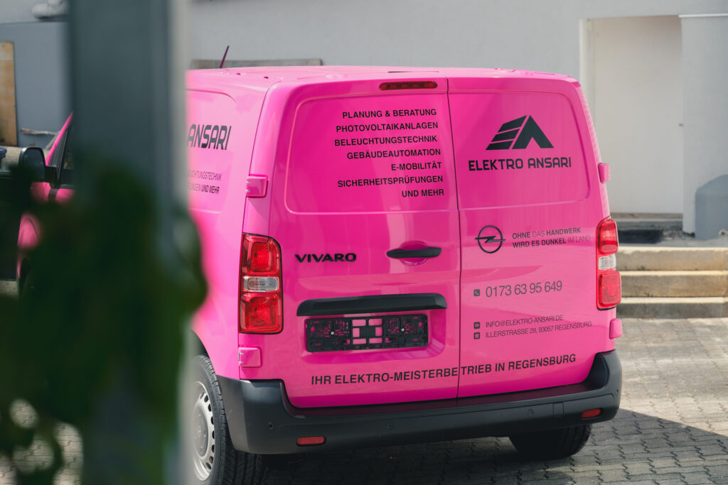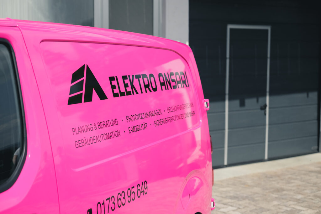 Für die Elektrofirma Elektro Ansari aus Regensburg durften wir kürzlich in Zusammenarbeit mit Michael von Bavaria Car Wrapping die Firmenfahrzeuge in ein echtes Highlight verwandeln: Die auffällige Vollfolierung in Telemagenta mit schwarzer Schrift sorgt nicht nur für maximale Sichtbarkeit im Straßenverkehr, sondern unterstreicht auch das innovative Profil des Unternehmens.