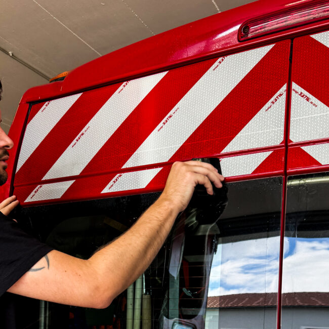 Gestern durften wir für die Feuerwehr Fürsteneck tätig werden und das Mehrzweckfahrzeug mit einer neuen reflektierenden Heckbeklebung nach DIN 14502-3 ausstatten. Die markante Warnmarkierung auf der Heckfläche sorgt nicht nur für eine verbesserte Sichtbarkeit im Straßenverkehr – vor allem bei Dunkelheit oder schlechter Witterung – sondern entspricht auch den aktuellen Vorschriften für Einsatzfahrzeuge.